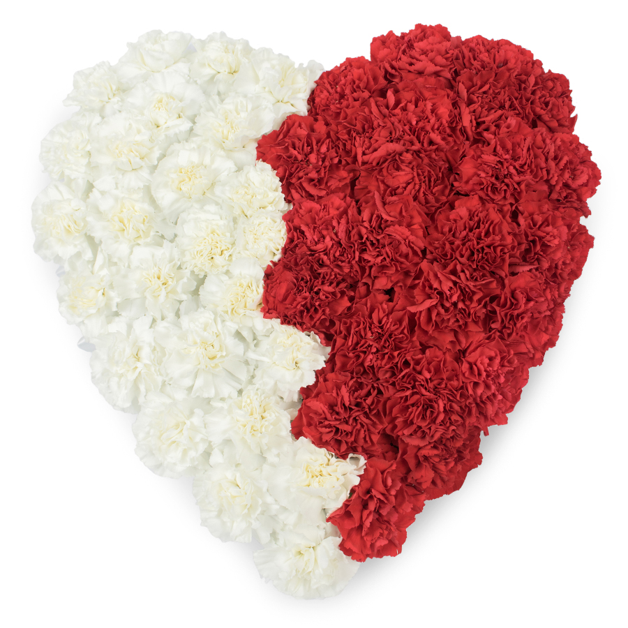 Lovely Heart-Shaped Red & White Carnation Arrangement